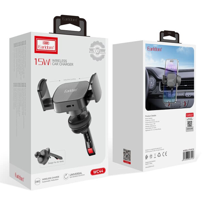 Держатель автомобильный earldom et-wc44 раздвижной с беспроводной зарядкой, крепление на решетку, черный