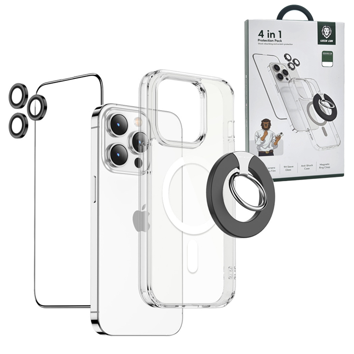 Чехол-крышка green lion 4в1 protection pack для iphone 14 pro фиолетовый