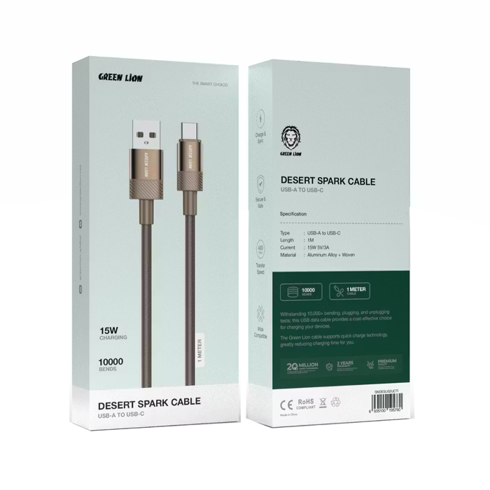Кабель green lion пустынный spark usb/type-c (15w) золотистый